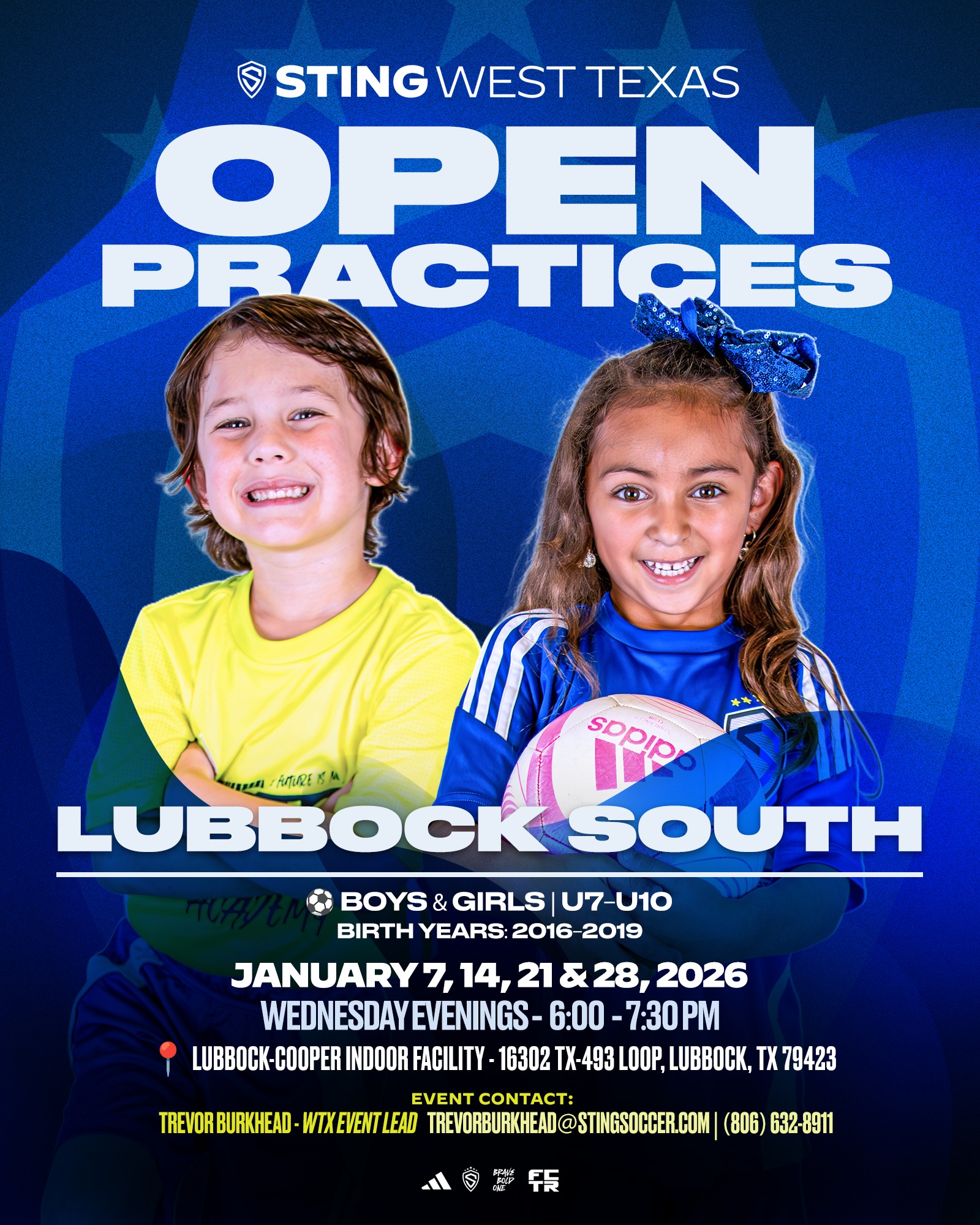 ⚽ Sting Lubbock Academy Open Practices are coming up January 12–22!